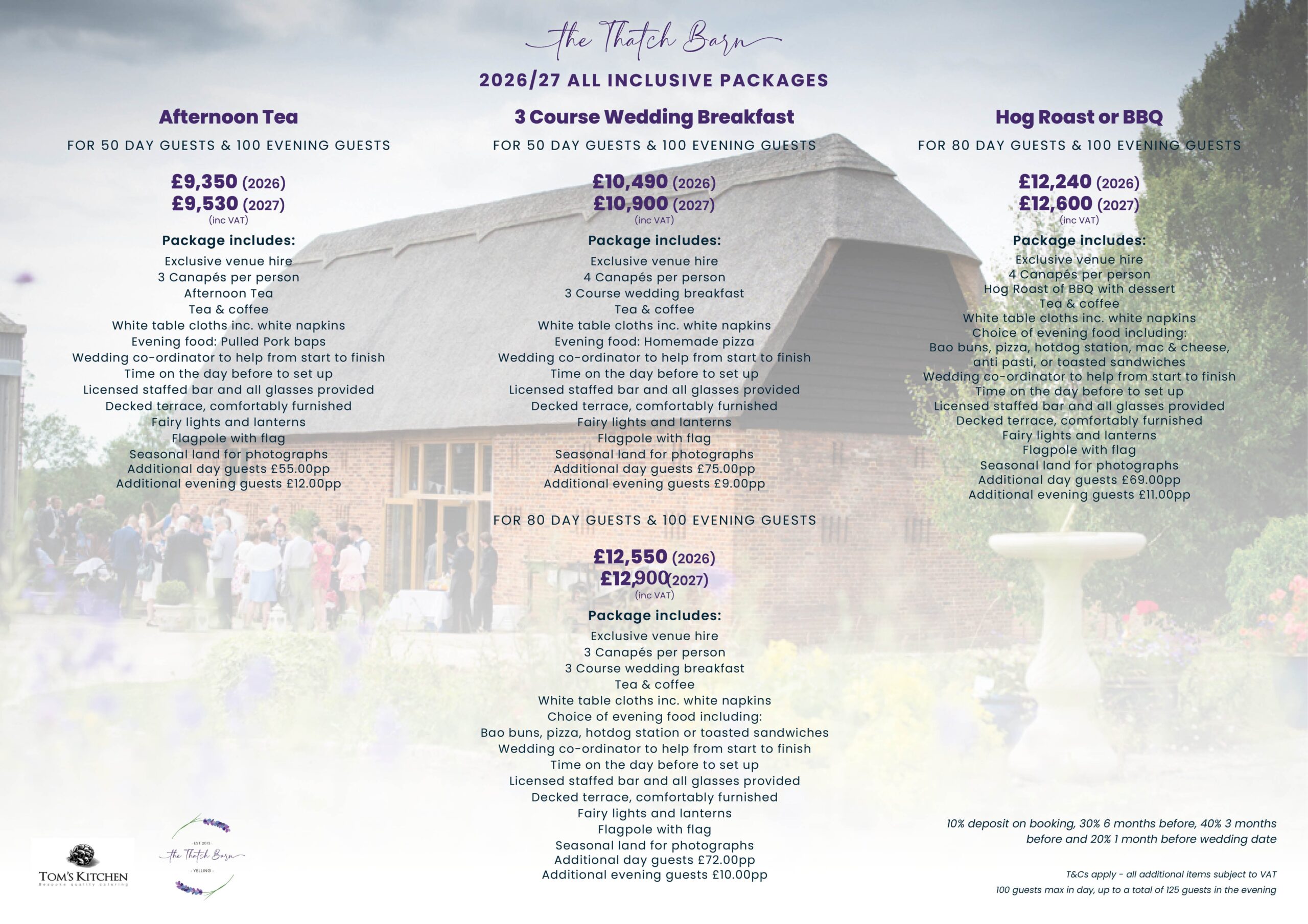 - Exclusive use of our beautifully restored thatched barn, accommodating up to 100 guests